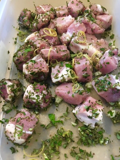 1. In a bowl mix the marinade ingredients together add the pork and coat thoroughly.
