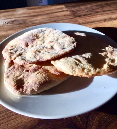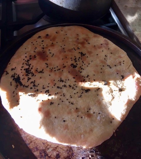 - Serve with rice or bread, or be greedy like us and have both! To be honest I found that there was a lot of liquid in these early season tomatoes which is why I ended up making naan bread as well as the rice! This is a link to a really easy recipe, I have tried many recipes for naan and find them to be hit and miss, this one however seems to work each time. I did it last minute so rushed the proofing time but as it was a hot, sunny day the dough rose fine in 30 – 40 minutes. I like to make them slightly bigger than the recipe suggests so make less, 6 in total. We ate three and usually I would freeze the other three for the next time, however this time I made three normal sized and I large one which I plan on making into a pizza for lunch, I will let you know if it works!
